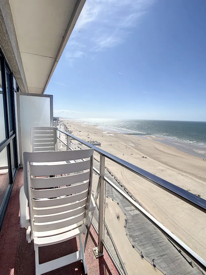 Deze ongemeubelde studio is gelegen op de 13e verdieping van residentie Royal Palace 7 en omvat een inkomhall, badkamer, toilet, ingerichte keuken en woonkamer met terras en schitterend zicht op zee . Er hoort tevens een kelder bij het appartement. De residentie ligt op het verkeersvrije deel van de Zeedijk en ligt vlakbij openbaar vervoer, bibliotheek, Kinepolis, Wellingon Renbaan,…