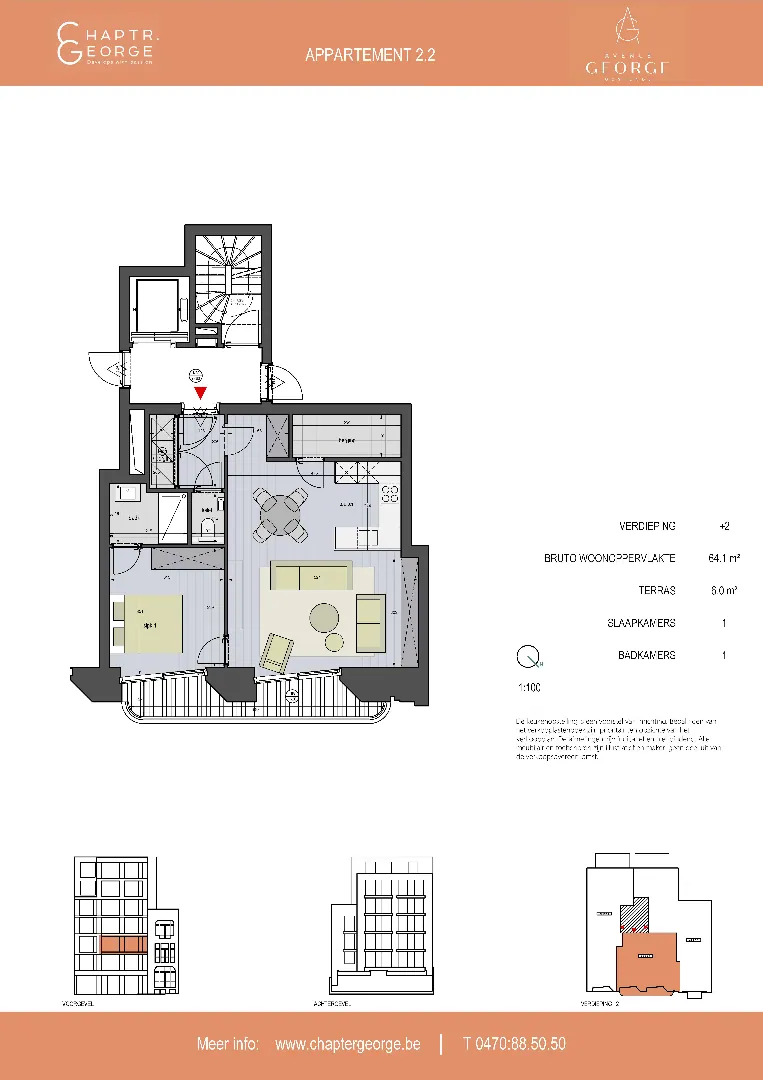 Schitterend 2 SLPK APP in de prachtige residentie “AVENUE GEORGE”, de residentie waar luxe en comfort samenkomen is gelegen op de schitterende Koninginnelaan.